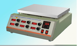 The Heavy Duty magnetic stirrers features stainless steel hot plate & additional spillage collection stainless steel tray with drain. Stirring by heavy duty PMDC motor which deliver torque even at lower speeds and maintains speed stability despite viscosity or volume changes. Accurate stepless speed control allows smooth variation up to 1000 rpm. Heating energy is controlled by energy regulator.